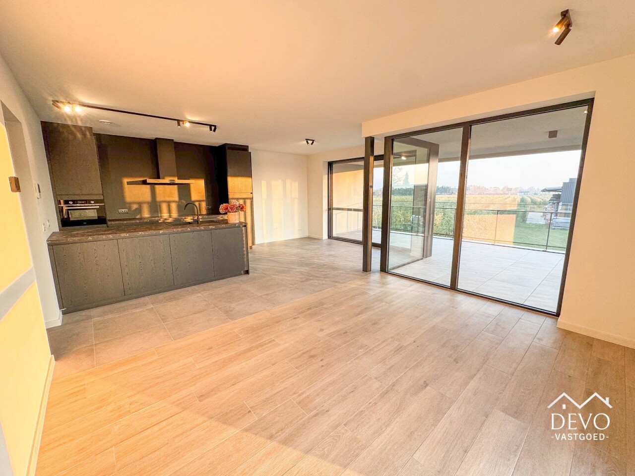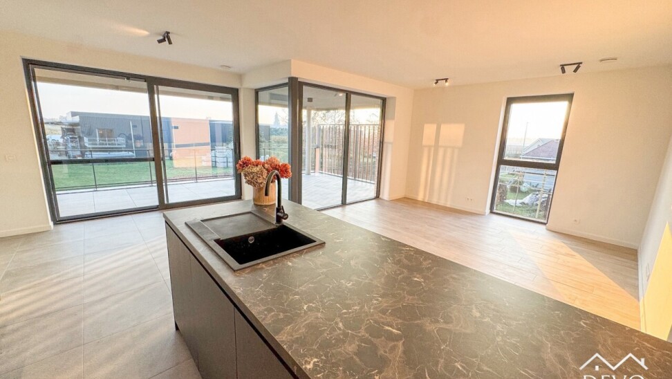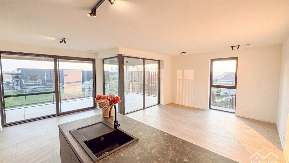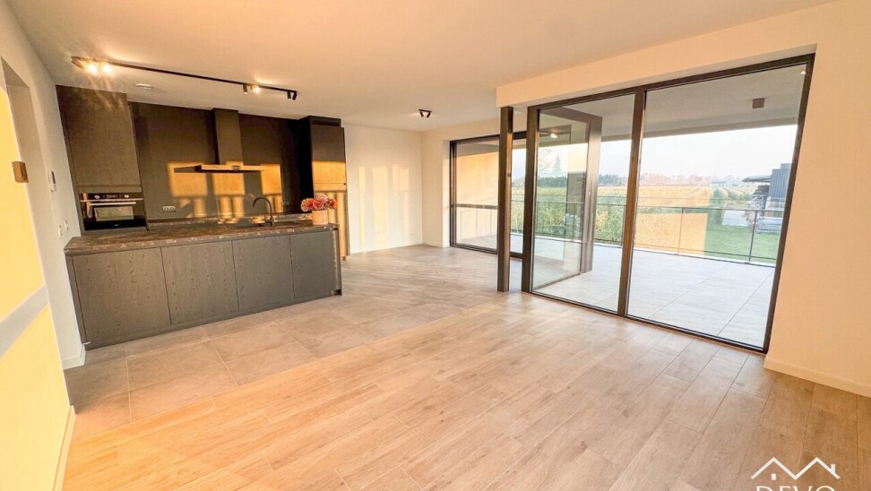 AANMELDEN VIA - devo.mijnhuurprofiel.be Dit prachtige nieuwbouwappartement in 'Residentie Deycke' heeft een prachtig uitzicht op de appelgaarden van Oud-Turnhout. Dankzij het ruime privé-terras kan je genieten van de ondergaande zon en het groene uitzicht. De open leefruimte zorgt voor een moderne look waarbij de volledig geïnstalleerde keuken uitzicht biedt op het terras en de zithoek. Het appartement is voorzien van 2 slaapkamers, een badkamer met moderne inloopdouche en een ruime berging met voorziening voor wasmachine. De ondergrondse staanplaats zorgt voor een comfortabele en veilige parkeergelegenheid. Daarnaast is er ook een afgesloten fietsenstalling. Middenin de site bevindt zich een gemeenschappelijke tuin met speeltuin, daarnaast kan er een polyvalente ruimte afgehuurd worden voor kleine evenementen. Maandelijkse vaste kosten: €110,- (onderhoud gemene delen, minuterie, ...) Huurwaarborg: 3 maanden (€3.870,- via Korfine) Beschikbaarheid: Onmiddellijk Type contract: Korte termijn 1 jaar (verlenging mogelijk) MobiScore: 8,3/10 Zoek je ondersteuning bij je vastgoedplannen? Contacteer ons op info@devovastgoed.be of 014 89 10 34. Ben je zelf op zoek naar een eigendom te koop of te huur? Vervolledig je zoekprofiel via: devovastgoed.be DEVO Vastgoed, Waar Dromen Wonen.