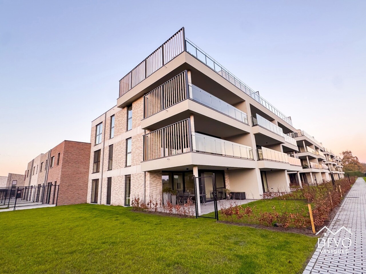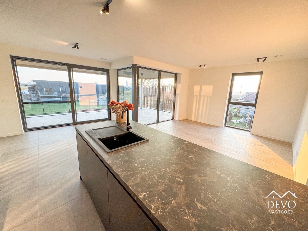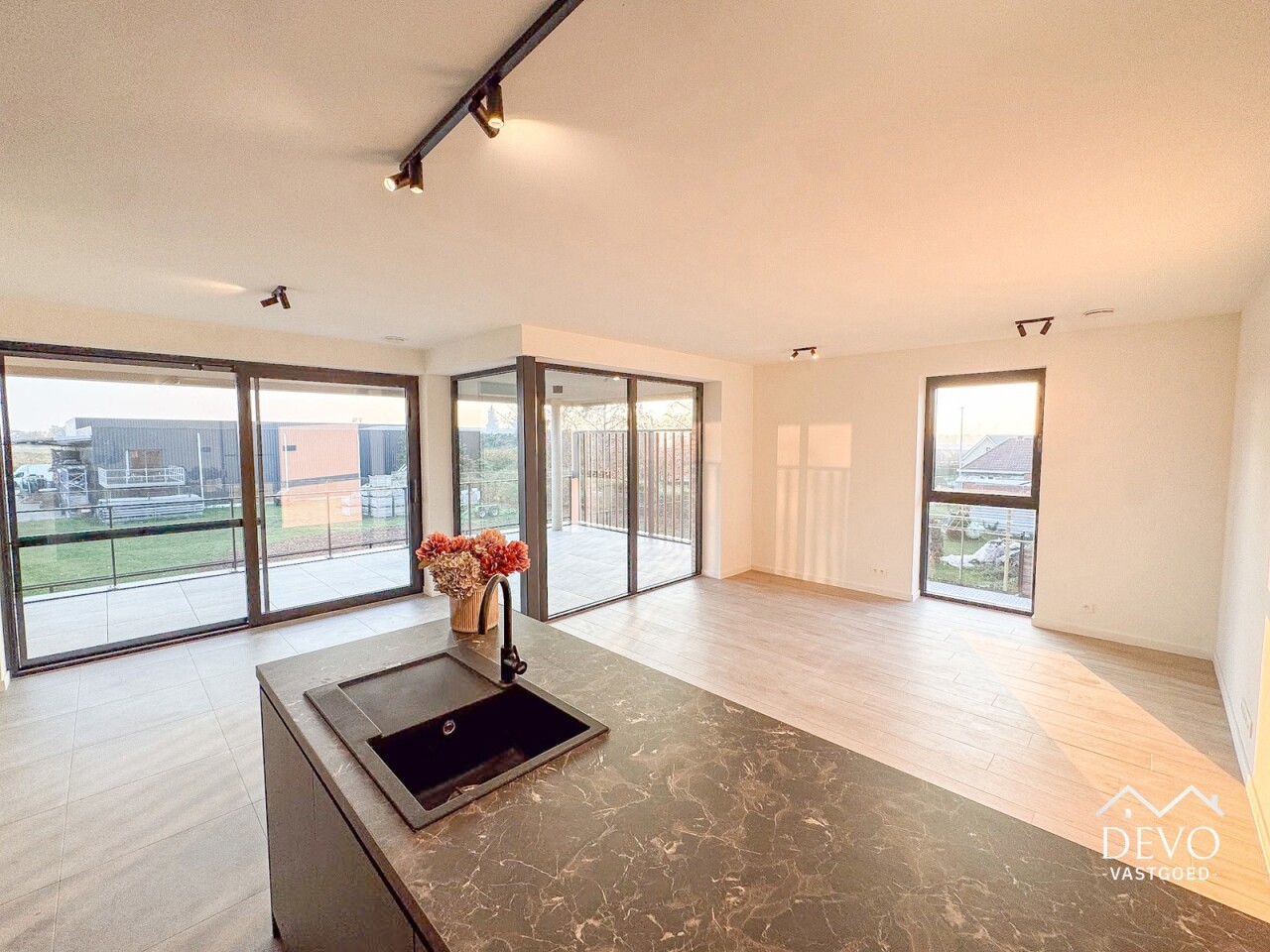 AANMELDEN VIA - devo.mijnhuurprofiel.be Dit prachtige nieuwbouwappartement in 'Residentie Deycke' heeft een prachtig uitzicht op de appelgaarden van Oud-Turnhout. Dankzij het ruime privé-terras kan je genieten van de ondergaande zon en het groene uitzicht. De open leefruimte zorgt voor een moderne look waarbij de volledig geïnstalleerde keuken uitzicht biedt op het terras en de zithoek. Het appartement is voorzien van 2 slaapkamers, een badkamer met moderne inloopdouche en een ruime berging met voorziening voor wasmachine. De ondergrondse staanplaats zorgt voor een comfortabele en veilige parkeergelegenheid. Daarnaast is er ook een afgesloten fietsenstalling. Middenin de site bevindt zich een gemeenschappelijke tuin met speeltuin, daarnaast kan er een polyvalente ruimte afgehuurd worden voor kleine evenementen. Maandelijkse vaste kosten: €110,- (onderhoud gemene delen, minuterie, ...) Huurwaarborg: 3 maanden (€3.870,- via Korfine) Beschikbaarheid: Onmiddellijk Type contract: Korte termijn 1 jaar (verlenging mogelijk) MobiScore: 8,3/10 Zoek je ondersteuning bij je vastgoedplannen? Contacteer ons op info@devovastgoed.be of 014 89 10 34. Ben je zelf op zoek naar een eigendom te koop of te huur? Vervolledig je zoekprofiel via: devovastgoed.be DEVO Vastgoed, Waar Dromen Wonen.
